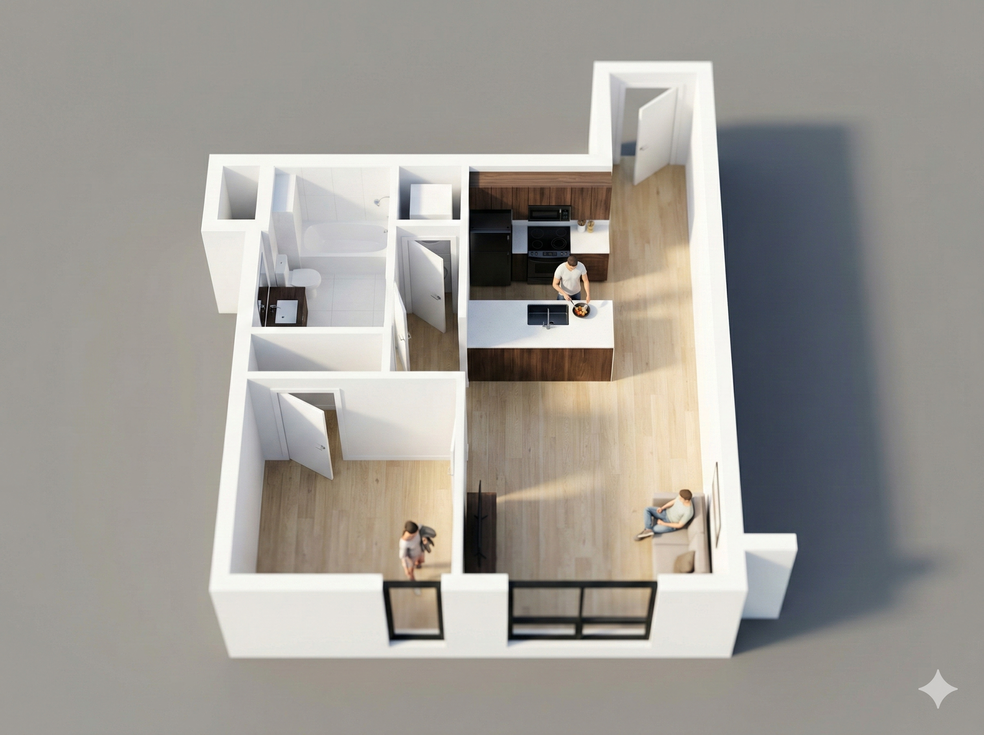 Each residence is thoughtfully crafted for comfort and sophistication. Choose from studio, one-bedroom, two-bedroom, and townhouse-style floor plans, many featuring private balconies and abundant natural light. Inside, you’ll find walnut wood kitchen cabinetry, sleek quartz countertops, and stainless steel appliances. Every unit also includes an in-unit washer and dryer and central air conditioning and heating, providing effortless convenience and year-round comfort.